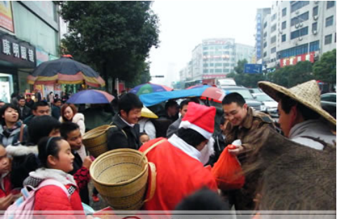 發(fā)布日期:2010-12-24 給我來一件、我也要、給我一個、還有我---12月23日,當(dāng)身著圣誕盛裝的 背簍人家 宣傳隊伍走上街頭立即引起路人關(guān)注,走到麻陽路口、舞水路、步行......
