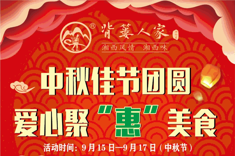 背簍人家 全體員工 在中秋節(jié)來臨之際 祝大家 闔家歡樂! 幸福美滿! 中秋節(jié)團(tuán)圓相聚 就來 背簍人家 ! 溫馨提示:以上活動(dòng)由廣告公司提供,如有使用,請(qǐng)聯(lián)系刪除!......