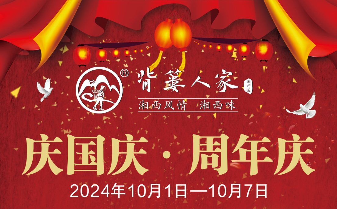 背簍人家 2024年,慶國慶,迎店慶,周年請(qǐng)大家一起相聚 背簍人家市委店 ,吃 湘西美食 ,品味湘西文化!......